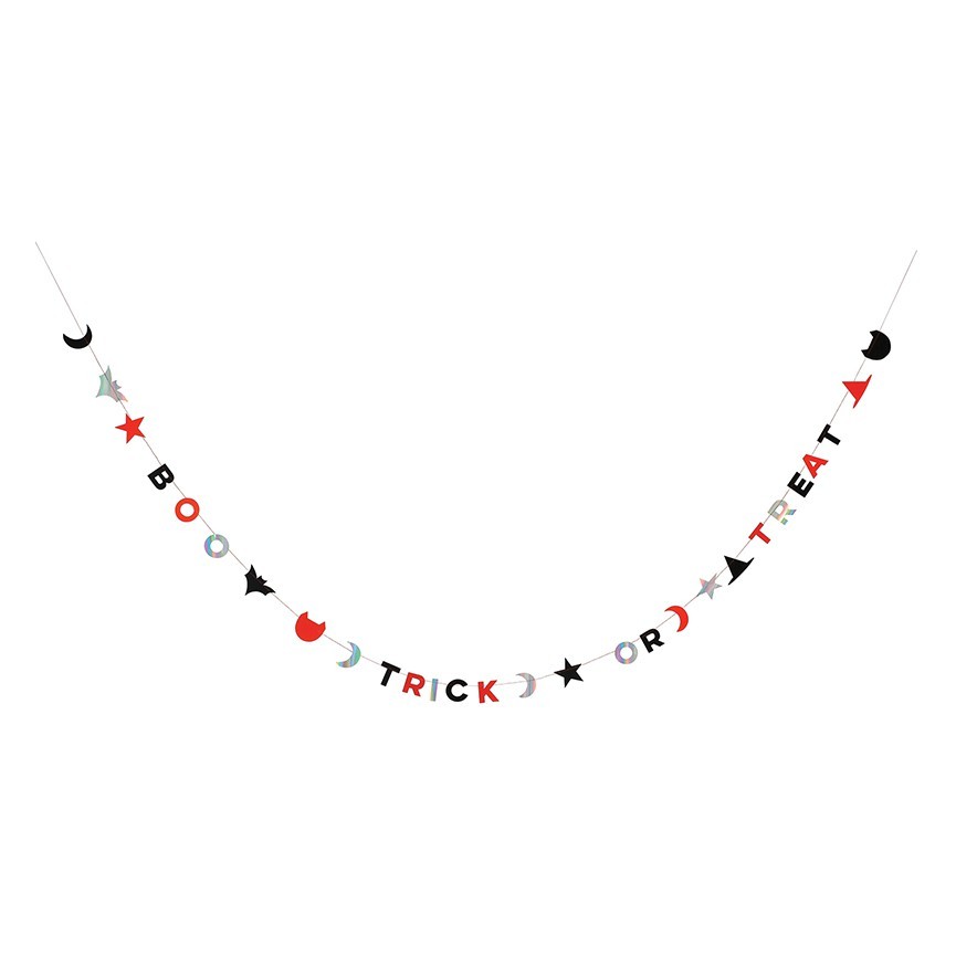 Sagen Sie "Boo" mit Fledermäusen, Katzen und Monden, indem Sie Ihre Halloween-Party mit dieser süßen Mini Girlande dekorieren. Sie ist mit Silber Glanzpapier verziert und kommt mit einer Neon-Schnur. 1-Stück-Packung. Länge: ca. 183 cm.