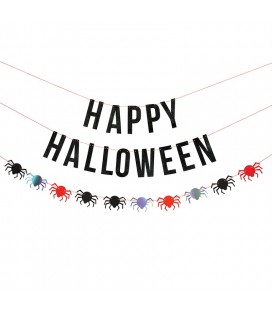 Eine schöne schreckliche Girlande, um allen kleinen und großen Gespenstern „Happy Halloween“ mit bunten Glanzpapier-Spinnen zu wünschen! 1-Stück-Packung. Länge: ca. 457 cm in 3 Reihen.
