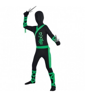 Unsere Ninja-Verkleidung für Buben und Mädchen ist schwarz mit grünen Ninja-Details, und sie ist aus durchlässigem, elastischem Elasthan, die den gesamten Körper bedeckt, einschließlich Hände, Gesicht und Füße. Dieses geschickte Kostüm ist so gemacht, dass man einfach atmen, trinken und sehen kann, mit einem speziellen Dual-Reißverschluss für ein schnelles An- und Ausziehen. Dieser Ninja-Anzug ist nur handwaschbar und dauerhaft zur Wiederverwendung.