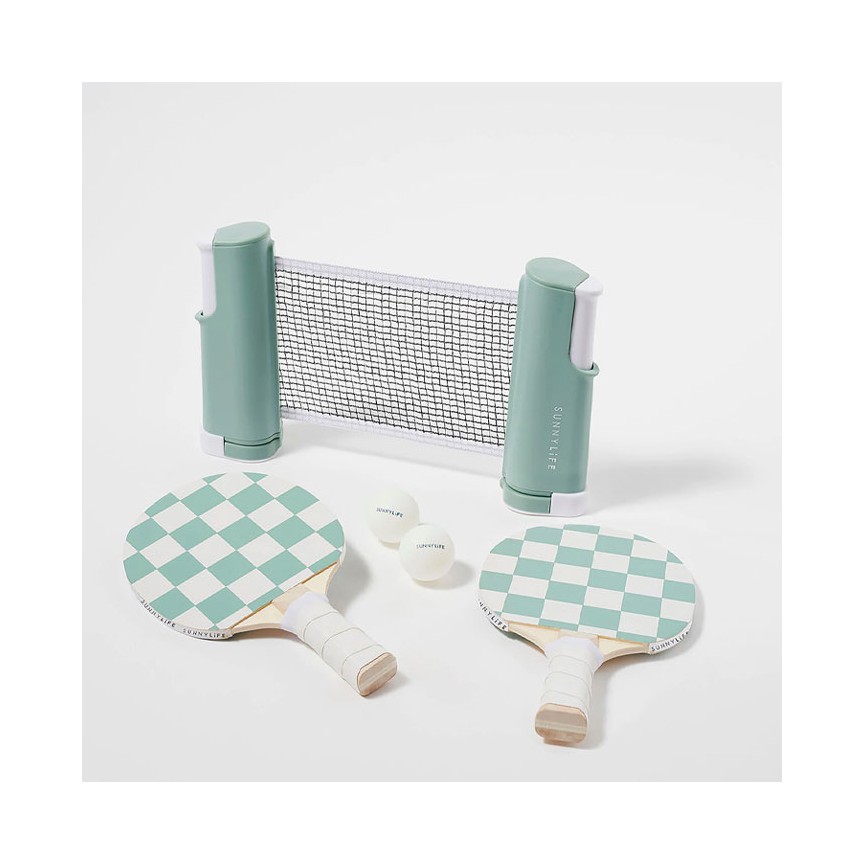 Lassen Sie das Spiel und den Spaß beginnen! mit diesem Tischtennis-Spiel der Trendmarke Sunnylife. Sie möchten eine Partie Tischtennis spielen, haben aber keinen Tisch zur Verfügung? Kein Problem! Mit diesem Sunnylife-Spiel können Sie zu Hause an Ihrem eigenen Tisch spielen, sowohl drinnen als auch draußen. Das einziehbare Netz lässt sich leicht an den meisten Oberflächen befestigen.