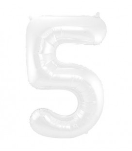 "Super Shape" Folienballon in Weiß, der Ihren Saal dekoriert und mit Stil die Nummer 5 anzeigt!