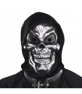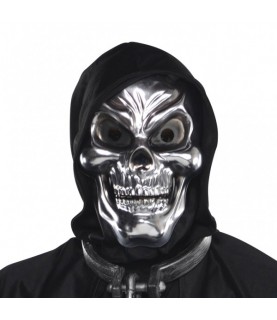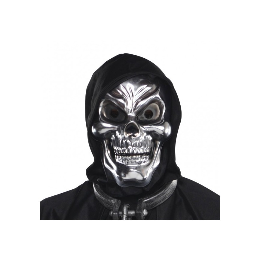 Unsere silberne Totenkopf-Maske hat einen Schädel mit übertriebenen Wangenknochen, ein gemeißeltes Kinn, schwarze Augen, und sie zeigt alle Zähne. Die Augen sind weit geöffnet für ein verrücktes und monströses Aussehen. Die Maske ist aus leichtem Kunststoff und hat eine Gummischnur.