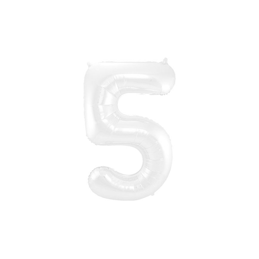 Silver "Super Shape" white matte foil balloon that will decorate and indicate with style the number 5!