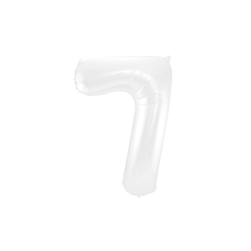 Silver "Super Shape" white matte foil balloon that will decorate and indicate with style the number 7!