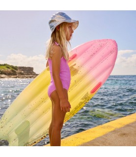 Profitez du calme de la piscine ou des vagues de la mer avec cette planche de surf gonflable de la marque branchée Sunnylife. Elle est équipée de poignées latérales et d'un aileron de poche d'eau pour la stabilité. Elle égayera votre été et sera l’accessoire tendance et original pour des fous rires garantis!