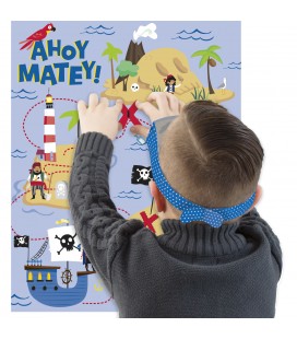 Jeu de pirate à fixer au mur. Le joueur qui colle son autocollant le plus près de l'emplacement indiqué gagne! Fous-rires garantis, surtout si vous tournez les enfants quelques tours sur eux-mêmes! Assurez-vous d'avoir à disposition plusiers petits cadeaux à distribuer aux joueurs.